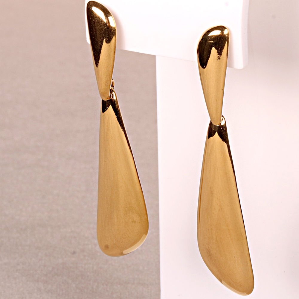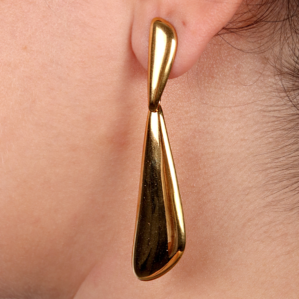 Her hareketinizde ışığı yansıtan bu altın damla küpeler, sadeliğin içindeki şıklığı ortaya çıkarıyor. Zarafeti ve asilliği her anınıza taşıyacak bu tasarımla, tarzınızı ön planda tutun.