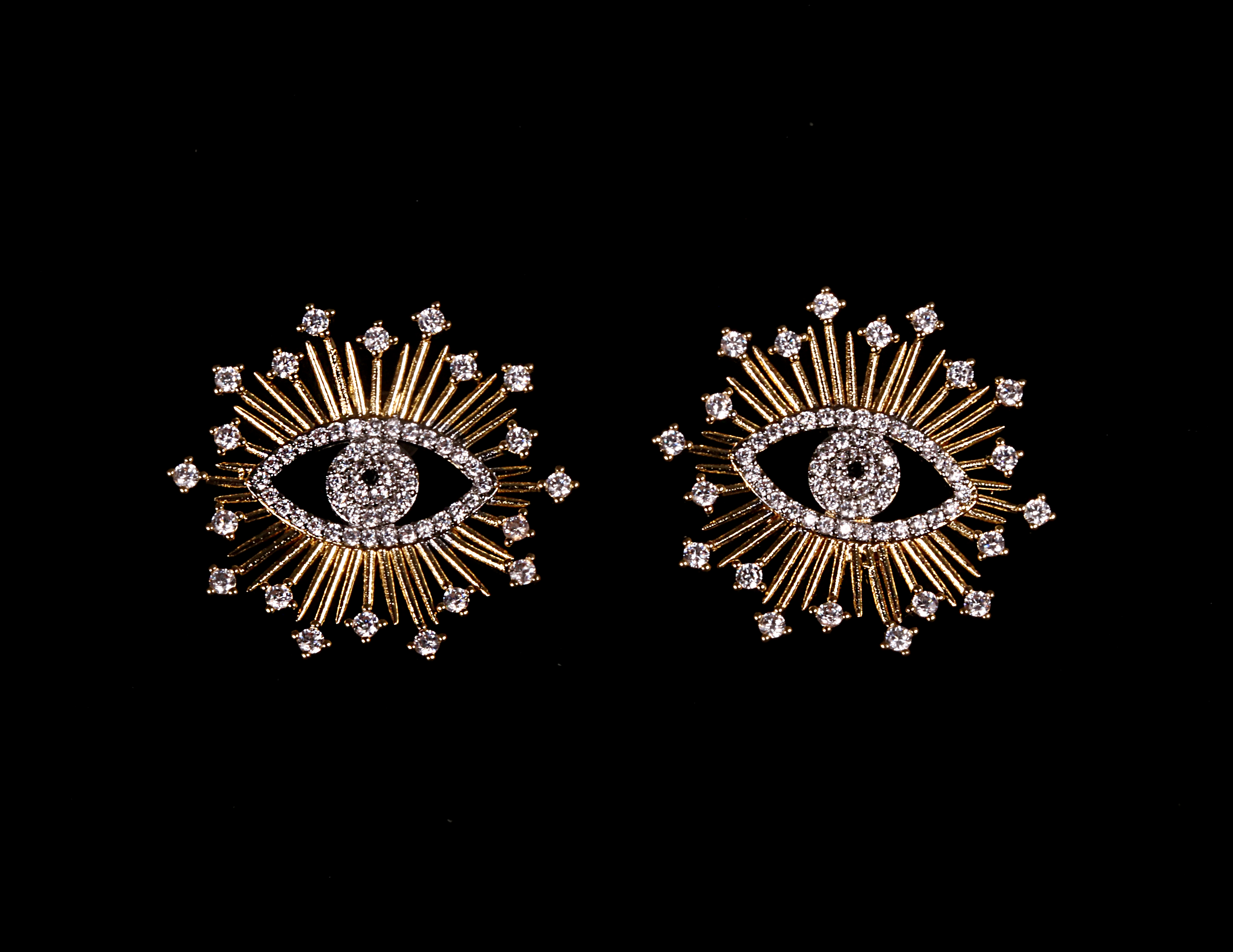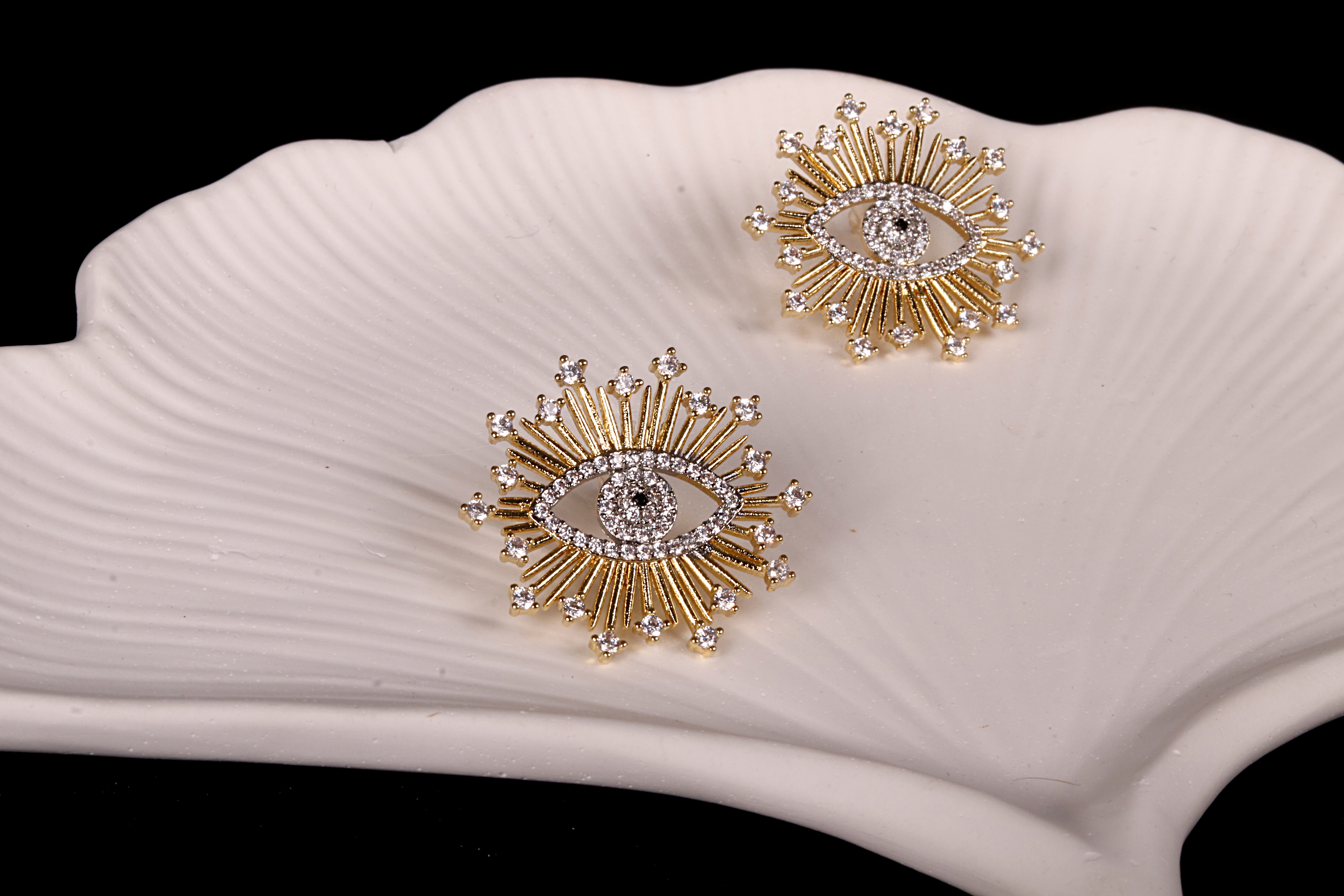 Güneşin ışığını ve göz sembolünün derin anlamını taşıyan bu küpeler, stilinize hem ışıltı hem de anlam katacak.